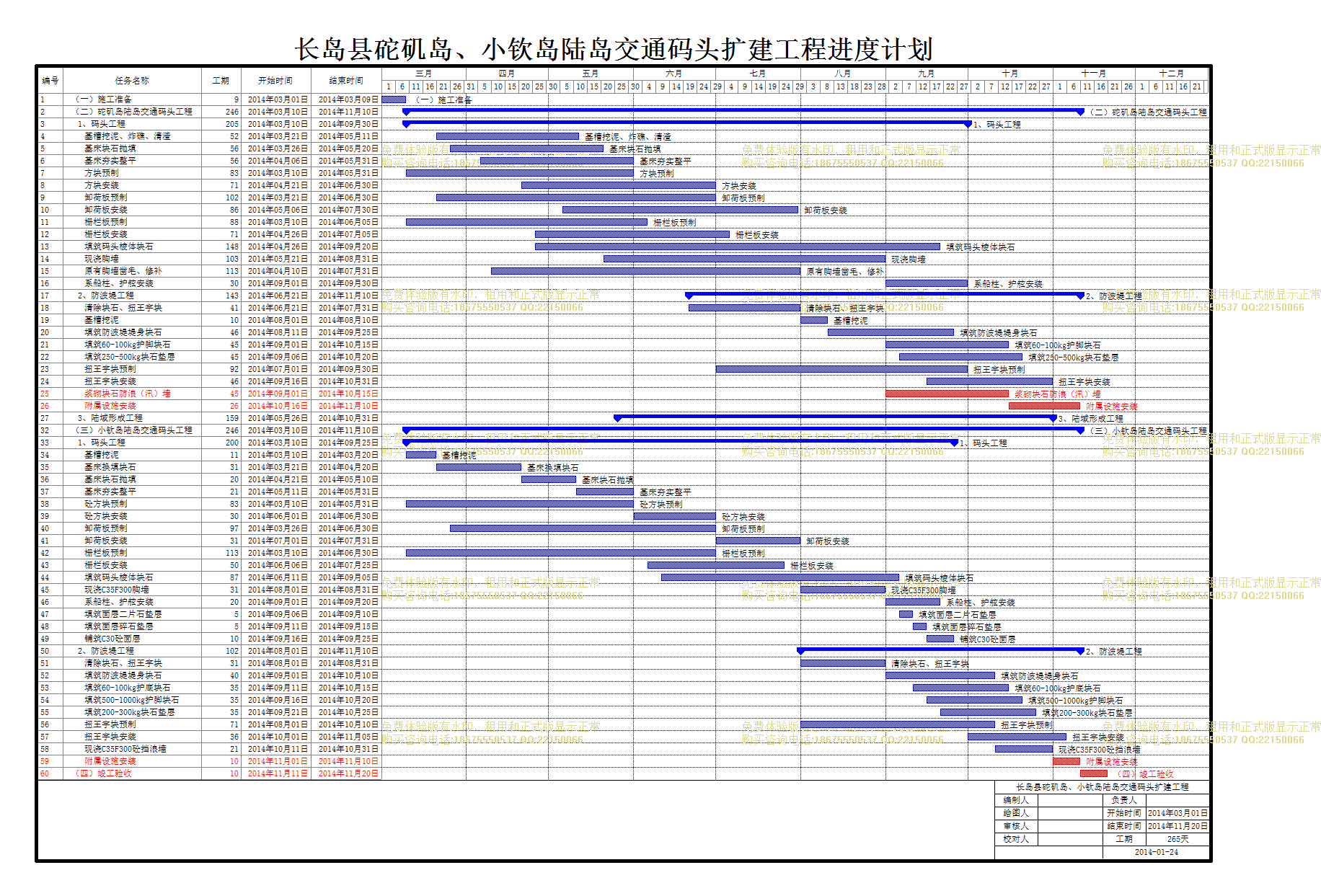 长岛县砣矶岛、小钦岛陆岛交通码头扩建工程| 文件编号 | 18451 | 工期 | 265天 | 开始时间 | 2014-03-01 | 结束时间 | 2014-11-20 |