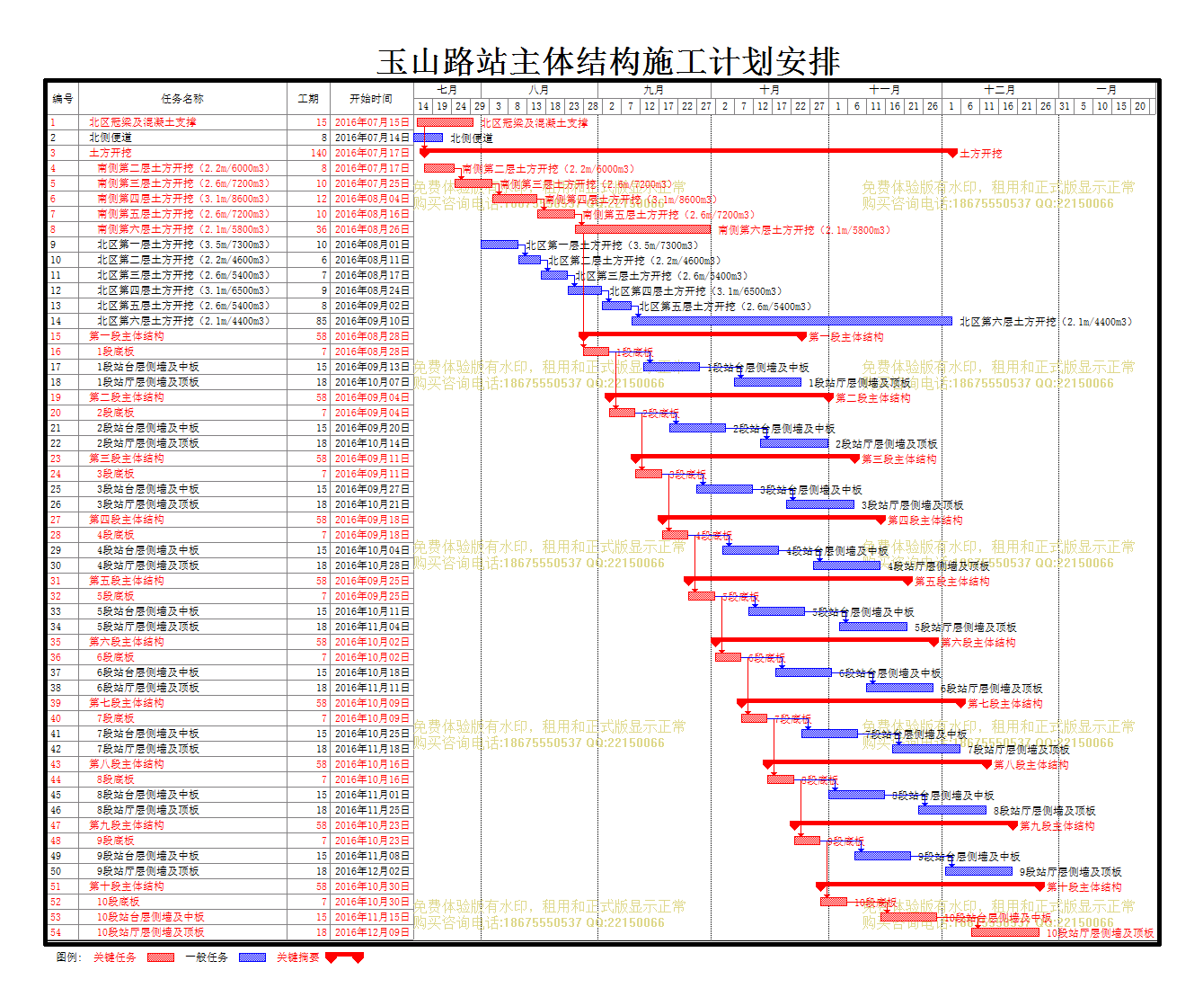 玉山路站施工计划横道图(2016.7.14).mpp| 文件编号 | 19491 | 工期 | 166天 | 开始时间 | 2016-07-14 | 结束时间 | 2016-12-26 |
