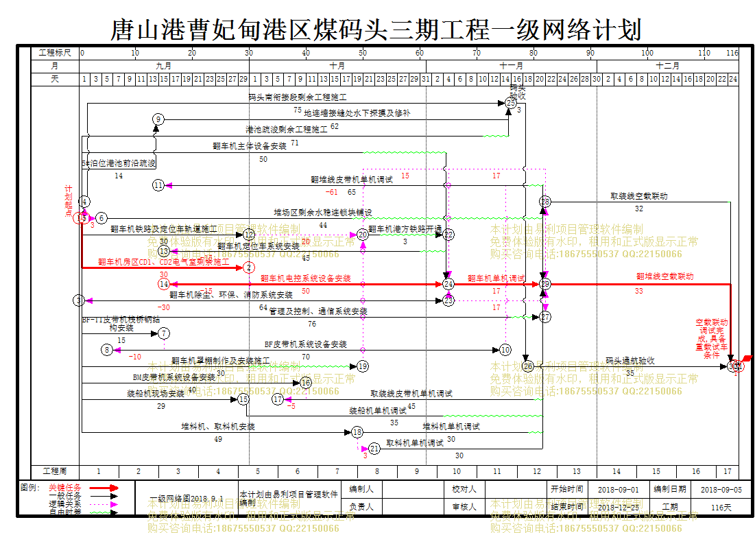 一级网络图2018.9.1| 文件编号 | 19904 | 工期 | 116天 | 开始时间 | 2018-09-01 | 结束时间 | 2018-12-25 |